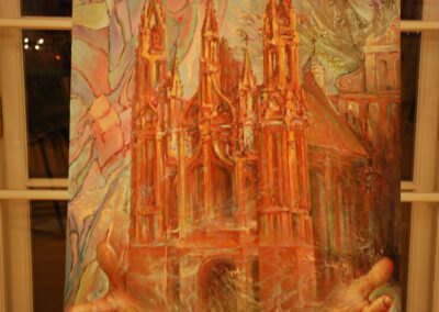 A swoją kolorystyką na uwagę zasługują obrazy Pani Danuty Lipskiej. Dają