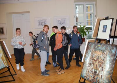 W pierwszych szeregach o wolność walczyli Kresowiacy generał Tadeusz Kościuszko, prof. Joachim Lelewel, marszałek Józek Piłsudski, tysiące kosynierów, chłopów, szlachty obu narodów. Prócz walki o niepodległość , miłość w tym nurcie romantycznym zajmuje duży wątek, tym niemniej jest ona nieszczęśliwa i tragiczna. A czy może ona być szczęśliwa i spełniona? W romantyzmie gdzie się toczy walka z tyranią, ze zniewoleniem, z niesprawiedliwością, nie może być prawdziwej, szczęśliwej miłości. O tym mówią dzieła romantyków: „Pan Tadeusz”, „Dziady”, „Oda do Młodości” Adama Mickiewicza albo „Kordian” Juliusza Słowackiego itd. Dla przykładu Mickiewicz opisując obrzęd dziadów przedstawia kanon wartości, dzięki któremu można dostąpić wiecznego szczęścia, a są nim: cierpienie, współczucie, miłosierdzie, zdolność do odwzajemniania uczuć, miłość. Kultura polskiego romantyzmu ukształtowała duchowość Polaków, najważniejsze cechy pozwalające nam przetrwać nawet najdramatyczniejsze próby zniszczenia narodu. Honor, waleczność, patriotyzm, przywiązanie do tradycji, empatia wobec losu innych i gotowość do ofiar, otwartość na inne kultury oraz przywiązanie do wolności – ten kanon wartości narodowej wspólnoty romantyzm przeniósł z dawnej Rzeczypospolitej i zdefiniował na nowo – czytamy w sejmowej uchwale z 17 listopada 2021 r.. W sprawie sąsiedzkich relacji Na zakończenie Pan Zygmunt Grochowski zadał pytanie, czy dzisiaj, we współczesnym świecie nie walczymy o swoją wolność zapewnioną konstytucją i…, o prawo do oświaty w języku ojczystym, o prawo do używania i pisowni swoich imion i nazwisk według swojego rodowodu, o prawo nietykalności swojej nieruchomości, o prawo posługiwania się językiem ojczystym w domu i w urzędach państwowych, o prawo na podwójne napisy ulic i miejscowości w miejscowościach zamieszkałych zwarcie przez mniejszości narodowe, o prawo posiadania obywatelstwa swoich przodków, a nie narzucanego bezprawnie przez inne mocarstwa, o prawo być państwem suwerennym, godnym nieponiewieranym, niewykorzystanym, nieoszukanym, niezastraszanym wśród państw Unii Europejskiej O te postulaty walczyli Polacy i Litwini, Węgrzy, Ukraińcy pod zaborem trzech mocarstw w Epoce Romantyzmu. Czy my obecnie, jako wolne i niezależne kraje Europy Wschodniej wyciągnęliśmy wnioski z historii naszej przeszłości, naszych błędów, marzeń i dążeń. Jesteśmy sąsiadami w tej części europejskiej, braćmi jak często powiada prezydent RP Andrzej Duda. Czy warto zatem prowadzić nietolerancyjną hybrydową wojnę, z tradycyjną, oświatą mniejszości narodowych. Jesteśmy niezależnymi, suwerennymi a jednocześnie najbliższymi sąsiadami budującymi te same cele, lepsze jutro dla swych społeczeństw, które jako sąsiedzi będziemy wspólnie się bronić przed każdym najeźdźcą. Nie szukajmy przyjaciół daleko, jeżeli Bóg nam dał ich tak blisko. Szanujmy się i bądźmy braćmi nie w słowach, a w czynach, o co prosi nasz prezydent Andrzej Duda. Następnie prezes SIKRP zarecytował „Odę do Młodości”, „Śmierć Pułkownika”, balladę „Powrót Taty”, „Rozmowa”, sonet „Stepy Akermańskie”, „Przyjaciele” po czym zaprosił wszystkich na otwarcie wystawy, płótna których można nabyć za wystawioną cenę. Zwiedzający mogli na obrazach zobaczyć miejsca po których przechadzał się Mickiewicz rozmyślając o Maryli. np.